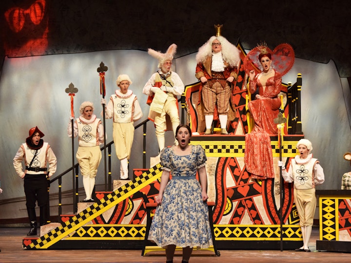 Card doublets made of silk jacquard with applied parachute cord décor and false side pockets made for The University of Oklahoma's 2018 production of Alice in Wonderland.